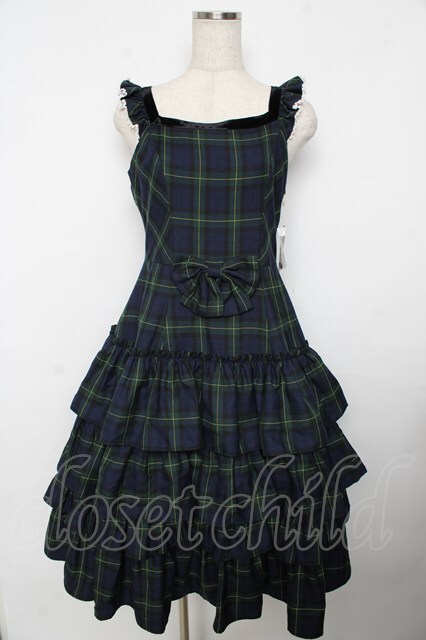Victorian maiden / ヴィクトリアンタータンフリルジャンパースカート グリーン Y-25-11-06-128-CL-OP-SZ-ZY [戻る]