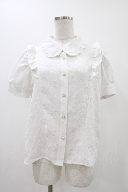 axes femme POETIQUE / バラふくれジャガード半袖ブラウス M オフ H-25-11-12-1050-AX-BL-NS-ZH