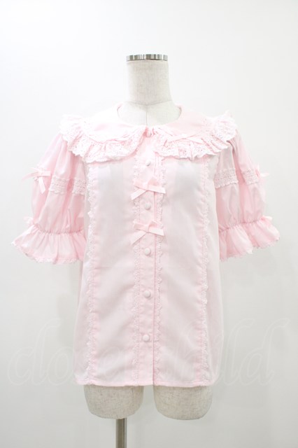 Chalmiere / トーションレース丸襟半袖ブラウス M ピンク H-25-11-12-1053-0-BL-NS-ZH [戻る]