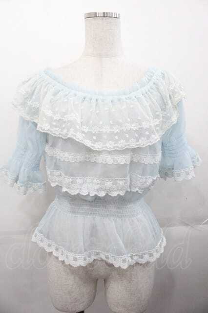 LIZ LISA / チュールレース半袖ブラウス サックスX白 I-25-11-04-006-LO-BL-SA-ZI
