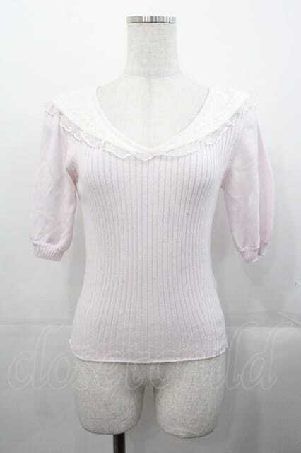 LIZ LISA / チュールセーラー襟半袖ニットトップス ピンクX白 I-25-11-04-007-LO-TO-SA-ZI