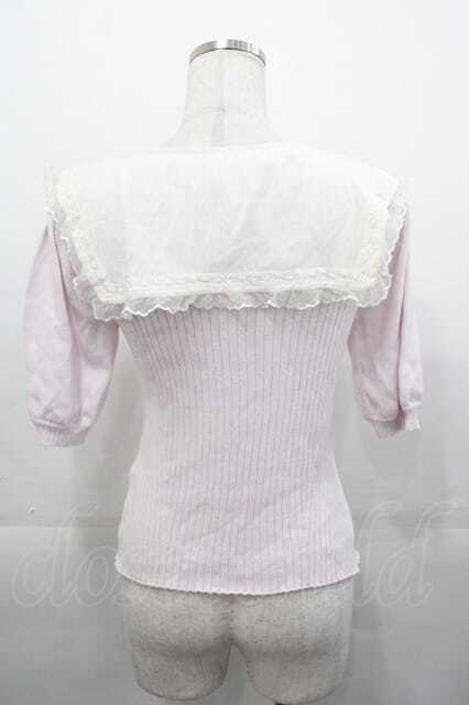 LIZ LISA / チュールセーラー襟半袖ニットトップス ピンクX白 I-25-11-04-007-LO-TO-SA-ZI