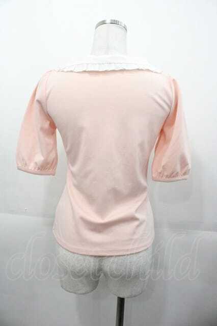 mon lily / フリル襟半袖トップス ピンクX白 I-25-11-04-008-LO-TO-SA-ZI