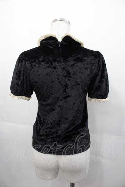 Rose Marie seoir / ベルベット半袖トップス 黒X生成り I-25-11-04-012-EL-TO-SA-ZI