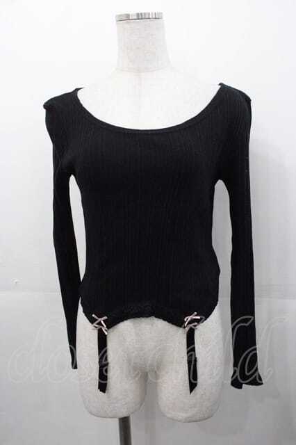 mon lily / ガーターリボンデザインカットソー 黒Xピンク I-25-11-04-013-LO-TO-SA-ZI
