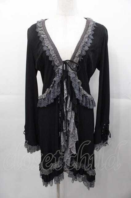 Ozz Croce / レースロングカーディガン 黒Xグレー I-25-11-04-016-OO-TO-SA-ZI