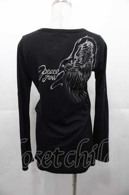 PEACE NOW / ラメ片翼プリントロングカーディガン 黒Xシルバー I-25-11-04-017-PU-TO-SA-ZI