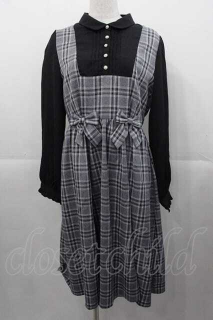 axes femme / チェックリボンドッキングワンピース 黒Xグレー I-25-11-04-046-AX-OP-SA-ZI [戻る]
