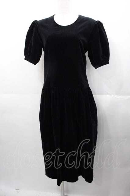 INGEBORG / 別珍半袖ワンピース 黒 I-25-11-04-054-LO-OP-SA-ZI