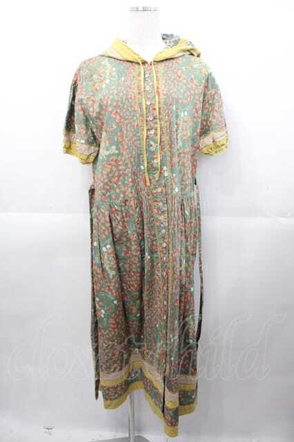 PINK HOUSE / イチゴ&ギンガム切替フード付き半袖ワンピース グリーン I-25-11-04-055-LO-OP-SA-ZI