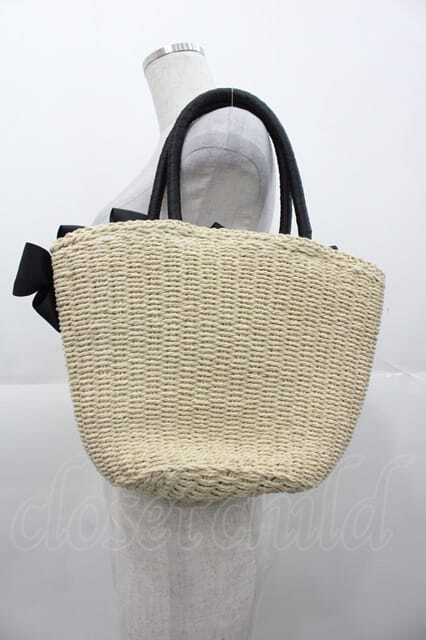 axes femme POETIQUE / リボン雑材風バッグ アイボリーX黒 I-25-11-04-093-AX-BG-SA-ZI