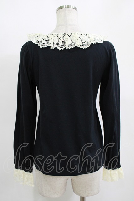 Leur Getter / レース襟カットソー 黒 H-25-11-12-041-LU-TO-KB-ZH