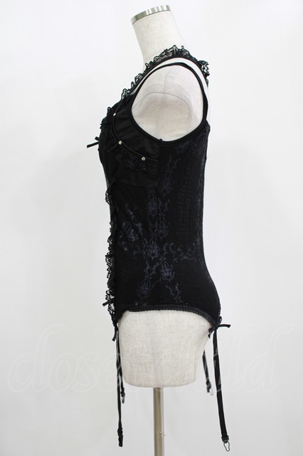 FRILL / ガーター風キャミソール ブラック H-25-11-12-051-HN-TO-KB-ZH