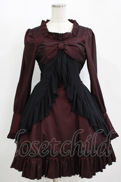 LAPIN AGILL / リボンフリルワンピース ボルドー H-25-11-12-001-EL-OP-KB-ZH