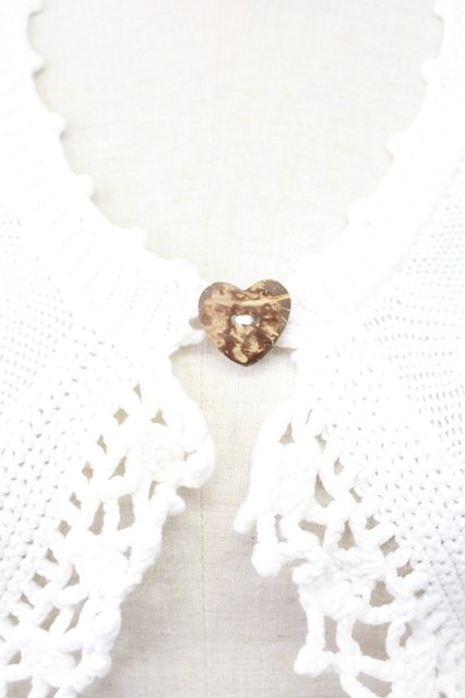 MILK / ハートボタン半袖ニットボレロ 白Xブラウン T-25-11-06-001-ML-TO-SA-ZI