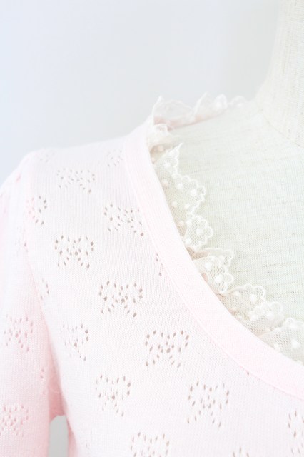 Emily Temple cute / リボン透かし編み七分袖ニットカーディガン ピンク T-25-11-06-014-ET-TO-SA-ZT