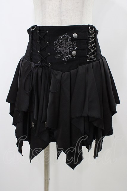 Ozz oneste / 刺繍イレギュラーハイウエストスカート ブラック H-25-11-13-034-OO-SK-KB-ZH [戻る]