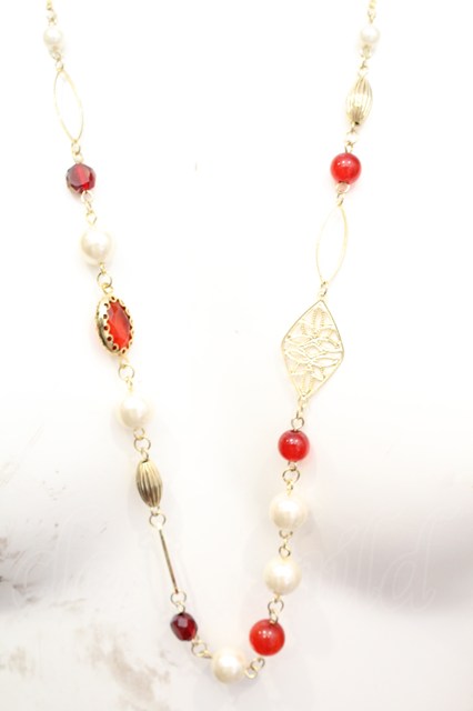 axes femme / パールビーズネックレス ゴールド×アカ O-25-11-06-061-AX-ZA-IG-ZT422-F004