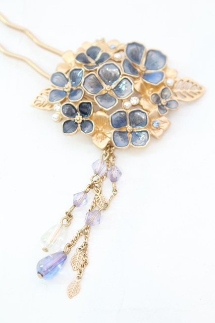 axes femme / 紫陽花モチーフかんざし ゴール7ド×ブルー O-25-11-06-045-AX-AC-IG-OS [戻る]