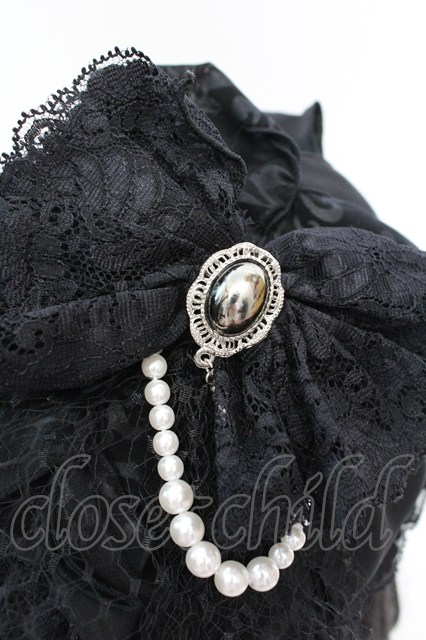 MARBLE / アンティークブローチ付きゴシック調ヘッドドレス ブラック O-25-11-06-012-GO-AC-IG-OS [戻る]