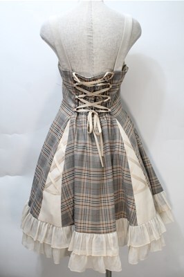 嬰梵塔.Infanta / チェック切替ジャンパースカート オフxベージュ S-25-11-05-018-LO-OP-HR-ZS