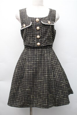 Ank Rouge / ツイードジャンパースカート 黒 S-25-11-05-026-CA-OP-HR-ZS