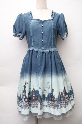 axes femme / グラデーションお城柄ワンピース ブルー S-25-11-05-030-AX-OP-HR-ZS [戻る]