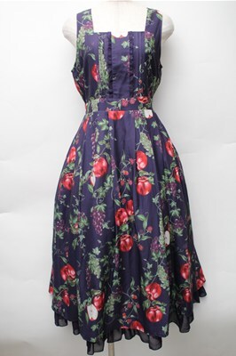 axes femme / シーズナルフルーツ柄ジャンパースカート 紫 S-25-11-05-035-AX-OP-HR-ZS