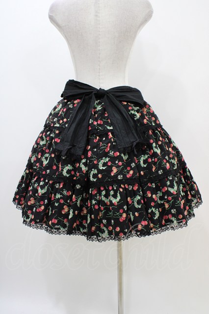 Angelic Pretty / チェリーシフォン3段フリルスカート Free ブラック H-25-11-14-019-AP-SK-NS-ZH