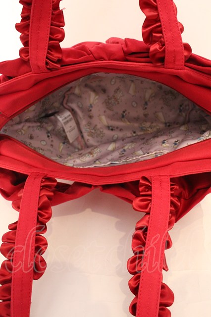 Maison de FLEUR / SnowWhite/フリルハンドルトートバッグ アカ O-25-11-07-1003-LO-BG-IG-ZT-K012