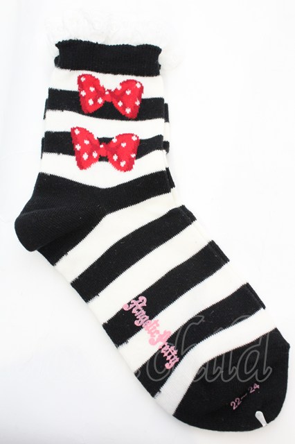 Angelic Pretty / ボーダーリボンクルー丈ソックス クロ O-25-11-07-1038-AP-ZA-IG-OS [戻る]