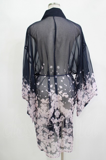 axes femme kawaii / 桜柄シアー着物風羽織 M ネイビー H-25-11-13-1036-AX-TO-NS-ZH