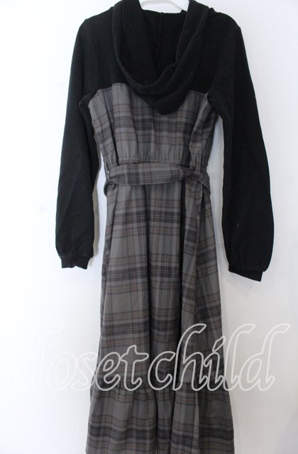 axes femme / パーカードッキングワンピース クロ×グレー O-25-11-07-037-AX-OP-IG-OS