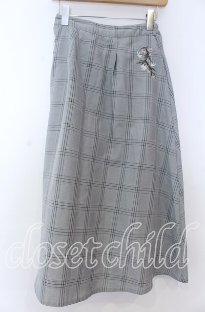 axes femme / 花刺繍チェック柄スカート グレー O-25-11-07-015-AX-SK-IG-OS [戻る]