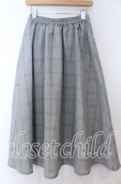 axes femme / 花刺繍チェック柄スカート グレー O-25-11-07-015-AX-SK-IG-OS