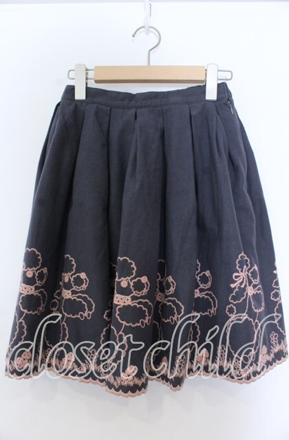 Emily Temple cute / プードル刺しゅうスカート グレー O-25-11-07-133-ET-SK-OW-ZT276