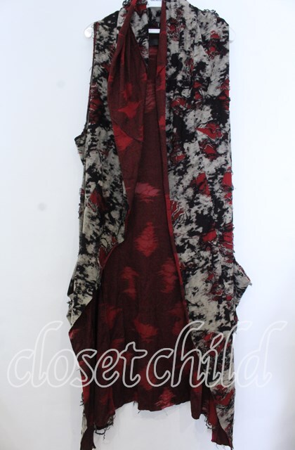 MIDAS / タイダイダメージノースリーブトッパーカーディガン ベージュ×レッド O-25-11-07-110-PU-TO-IG-OS