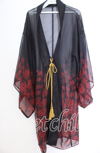 axes femme kawaii / 彼岸花柄シアー着物風羽織 クロ×アカ O-25-11-07-043-AX-TO-IG-OS