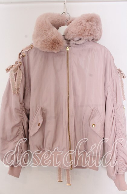 LIZ LISA / メッセージリボンファーフードブルゾン ピンク O-25-11-07-056-LO-CO-OW-OS