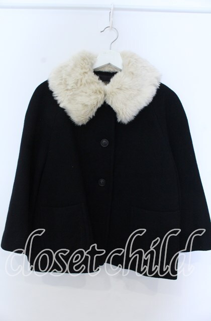 Jane Marple / Lamb melton fur collar cape coat コート M クロ O-25-11-07-137-JM-CO-OW-OS
