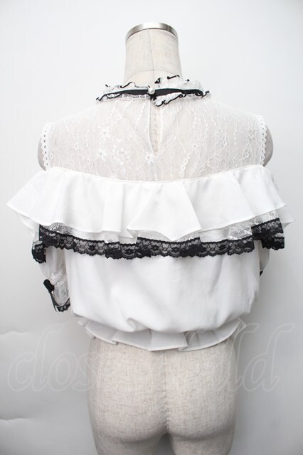 LIZ LISA / オープンショルダーフリルブラウス 0 白x黒 S-25-11-06-023-LO-BL-HR-ZS