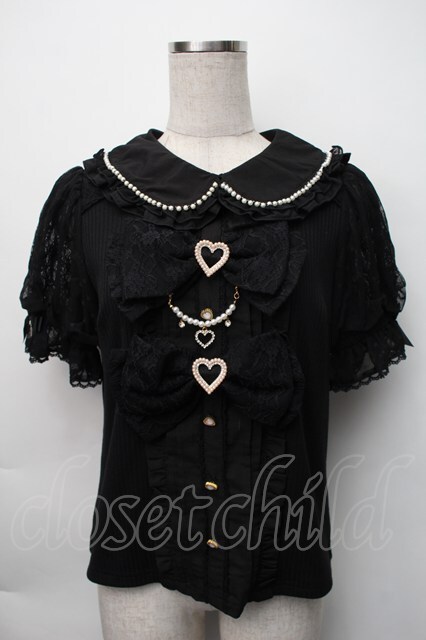 LIZ LISA / ダブルリボンパフスリーブリブカットトップス 0 黒 S-25-11-06-029-LO-TO-HR-ZS