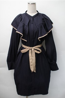 axes femme / パイピングフリルワンピース 紺 S-25-11-07-045-AX-OP-HR-ZS
