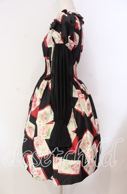 JESUS DIAMANTE / スペシャルバルーンスリーブワンピ 40 Newトランプ薔薇 クロ O-25-11-08-013-JE-OP-IG-OS