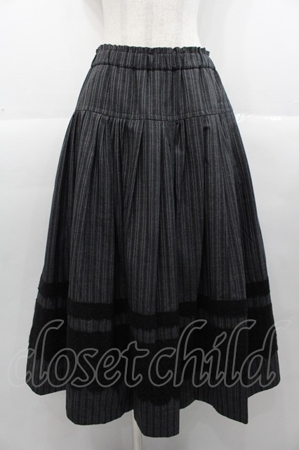 Jane Marple Dans Le Salon / ストライプ&ニットレーススカート 黒 I-25-11-07-080-JM-SK-SA-ZI