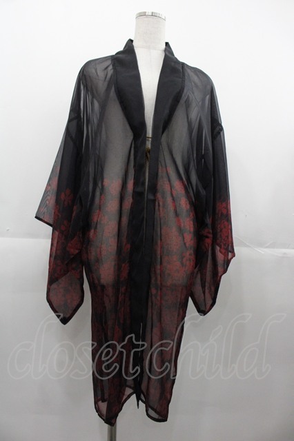 axes femme kawaii / 彼岸花柄シアー着物風羽織 黒X赤X白 I-25-11-07-061-AX-TO-SA-ZI