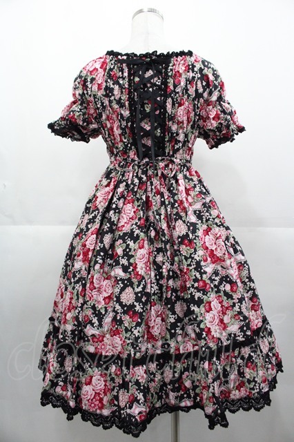 BABY,THE STARS SHINE BRIGHT / シュガーブーケ〜永遠の乙女の憧れ〜柄シャーリングワンピース 黒 I-25-11-07-053-BA-OP-SA-ZI [戻る]