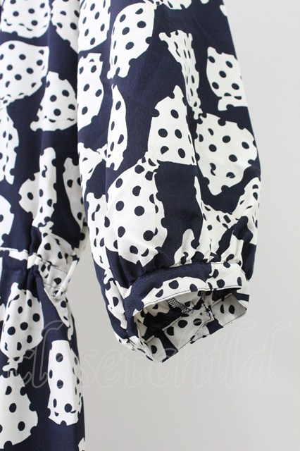 INGEBORG / ドットリボン総柄シャツワンピース 黒X白 T-25-11-09-009-LO-OP-SA-ZT504