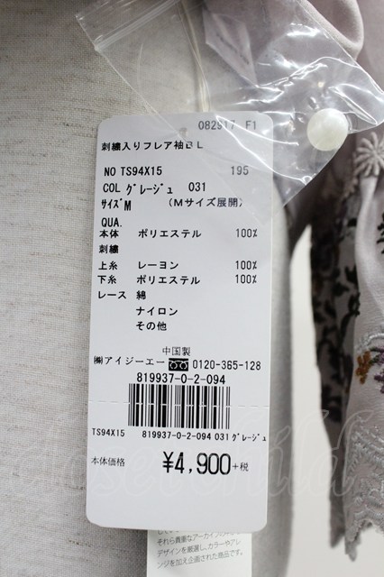 axes femme / ミュルーズ染織美術館コラボ/刺繍入りフレア袖ブラウス M グレージュ T-25-11-09-017-AX-BL-SA-ZT509 [戻る]