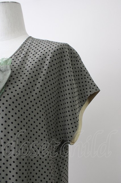 INGEBORG / フロントリボン半袖ドットワンピース グレーX黒 T-25-11-09-029-LO-OP-SA-ZT384